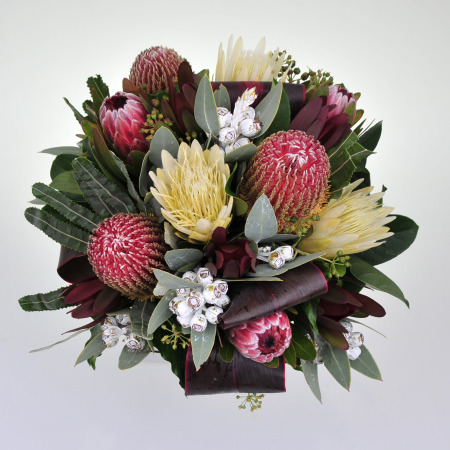 This unique arrangement consists of some famous Australian flora like leucadendron, banksia, protea and fabulous foliage.